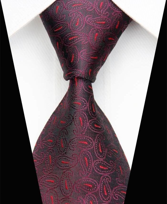 Cravata Material: matase jacquard 100%. Dimensiuni: 150 cm x 10 cm. Stil & Culoare: Modele paisley; rosu burgund, rosu, negru. Ambalaj special, hand made; designer italian.