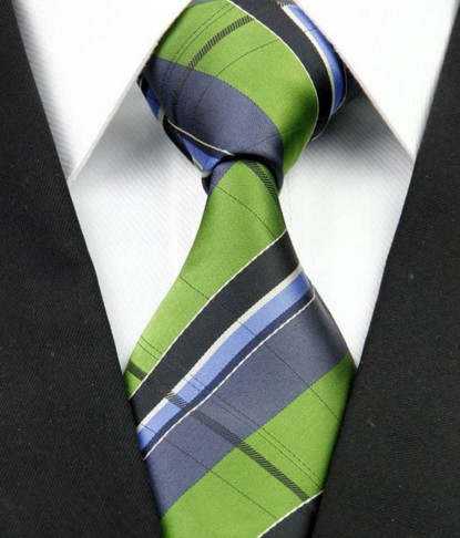 Cravata Material: amestec matase jacquard. Dimensiuni: 150 cm x 10 cm. Stil & Culoare: Model in dungi si carouri; verde, bleu navy, alb, negru. Ambalaj special, hand made; designer italian.