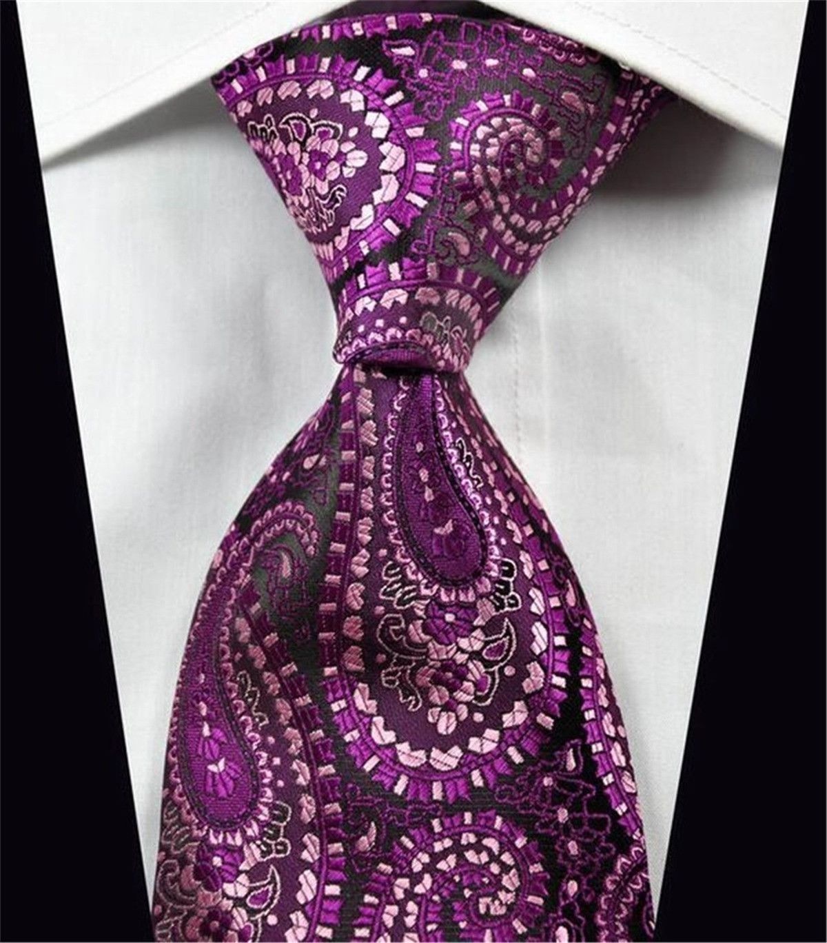 Cravata Material: matase jacquard 100%. Dimensiuni: 150 cm x 10 cm. Stil & Culoare: Modele paisley si florale; violet, negru, alb. Ambalaj special, hand made; designer italian.