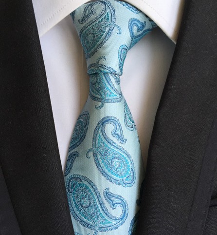 Cravata DemiSlim Material: matase jaquard 100%. Dimensiuni: 150 cm x 8 cm. Stil & Culoare: Modele paisley, turcoaz, alb. Ambalaj special, hand made; designer italian