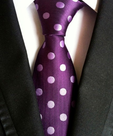 Cravata Material: matase jacquard 100%. Dimensiuni: 150 cm x 8 cm. Stil & Culoare: Model cu buline medii; nuante de mov lavanda. Ambalaj special, hand made; designer italian.