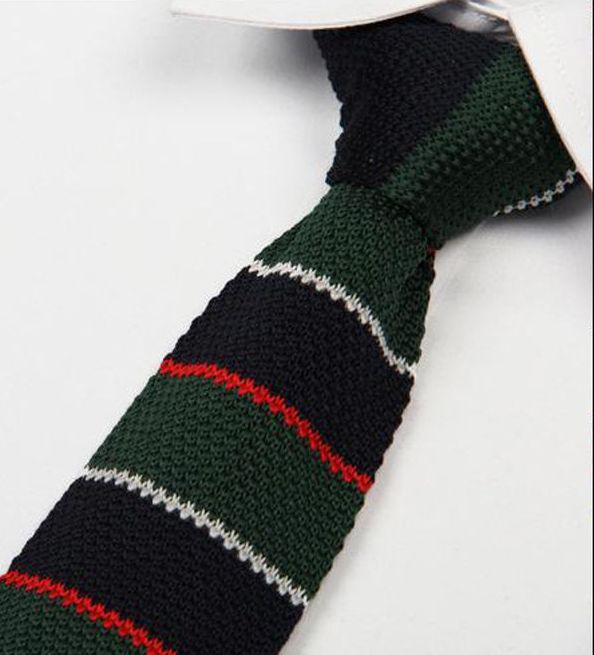 Cravata tricot slim. Material: tricot bumbac & microfibra. Dimensiuni: 145 cm x 5 cm. Stil & Culoare: Model impletit cu dungi orizontale; albastru navy, verde, rosu, alb. Ambalaj special, hand made.